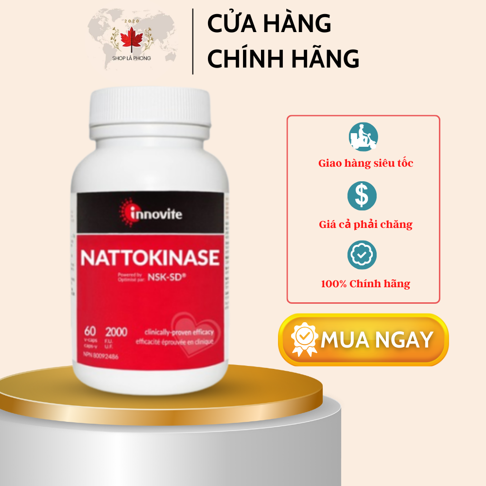 Nattokinase giúp hỗ trợ sức khỏe hệ thống tim mạch. Nattokinase thúc đẩy quá trình phân hủy fibrin, hoặc sự phân hủy fibrin, một loại protein tạo nên cấu trúc lưới trong quá trình hình thành cục máu đông. Nattokinase của Innovite được sản xuất bằng NSK-SD, hiệu lực cao nhất hiện có của bất kỳ Nattokinase không chứa Vitamin K2 nào trên thị trường, với hơn 2000 FU mỗi viên nang.