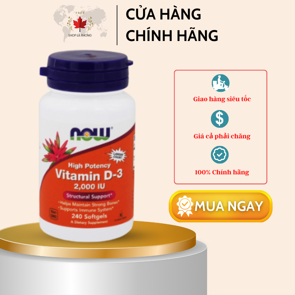 Now Foods High Potency Vitamin D3 softgels cung cấp vitamin quan trọng này ở dạng softgel lỏng có khả năng hấp thụ cao. Now Foods High Potency Vitamin D 3 thường được lấy từ chế độ ăn uống hoặc do da sản xuất từ năng lượng tia cực tím của mặt trời. Tuy nhiên, nó không có nhiều trong thực phẩm. Khi nhiều người tránh tiếp xúc với ánh nắng mặt trời, việc bổ sung Vitamin D3 của Now Foods càng trở nên cần thiết hơn để
